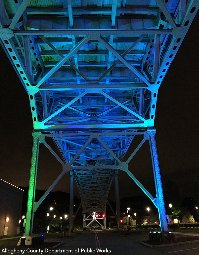 The Homestead Grays Bridge had a major rehabilitation in 2006 and 2007 that included widening the bridge deck while maintaining two lanes of traffic on the bridge at all times. The new deck is six feet wider for the traffic lanes, while also providing pedestrian walkways on each side of the bridge. The steel superstructure was repainted, and the railings and lighting were replaced with replications of the original configurations. In 2019, Allegheny County undertook a bridge preservation project to make minor steel repairs; downspout and scupper repairs and cleanout; and barrier and deck repairs. With this type of preservation maintenance, this unique steel bridge should be in service well beyond its 100-year anniversary!